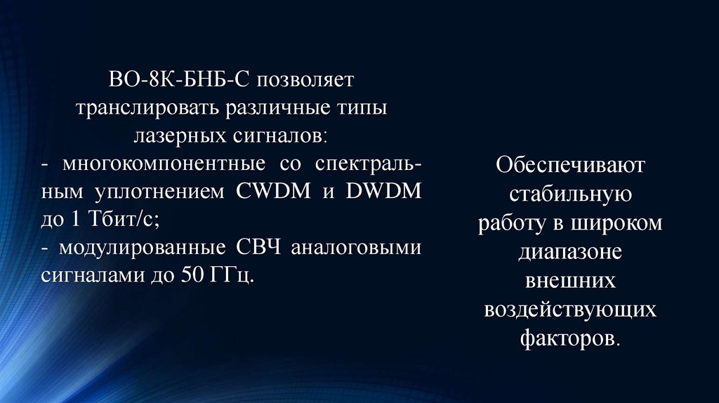 ВО-8К-БНБ-С позволяеттранслировать различные типы