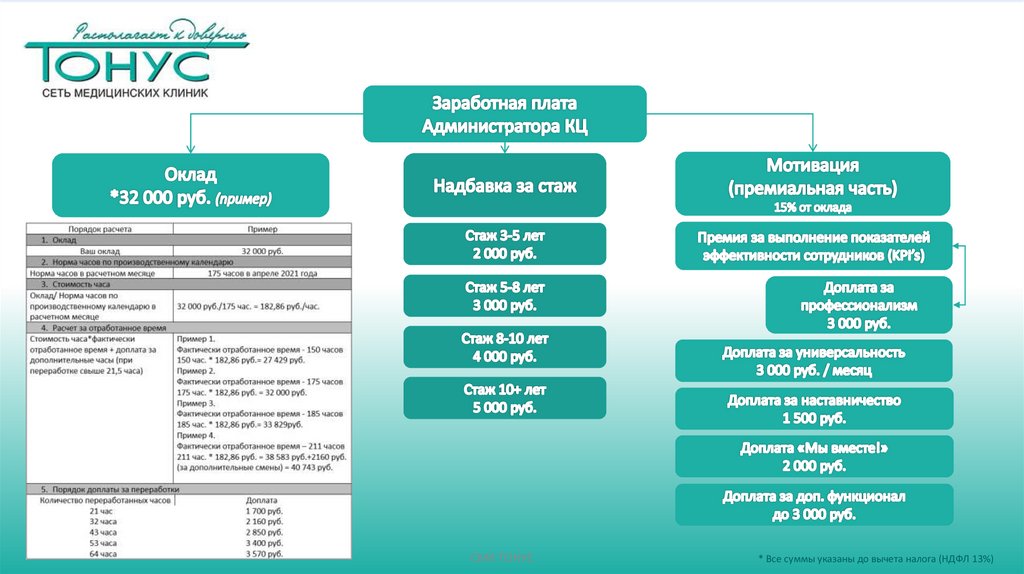 СМК ТОНУС* Все суммы указаны до вычета налога (НДФЛ 13%)
