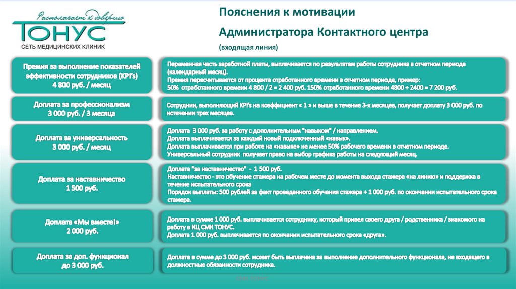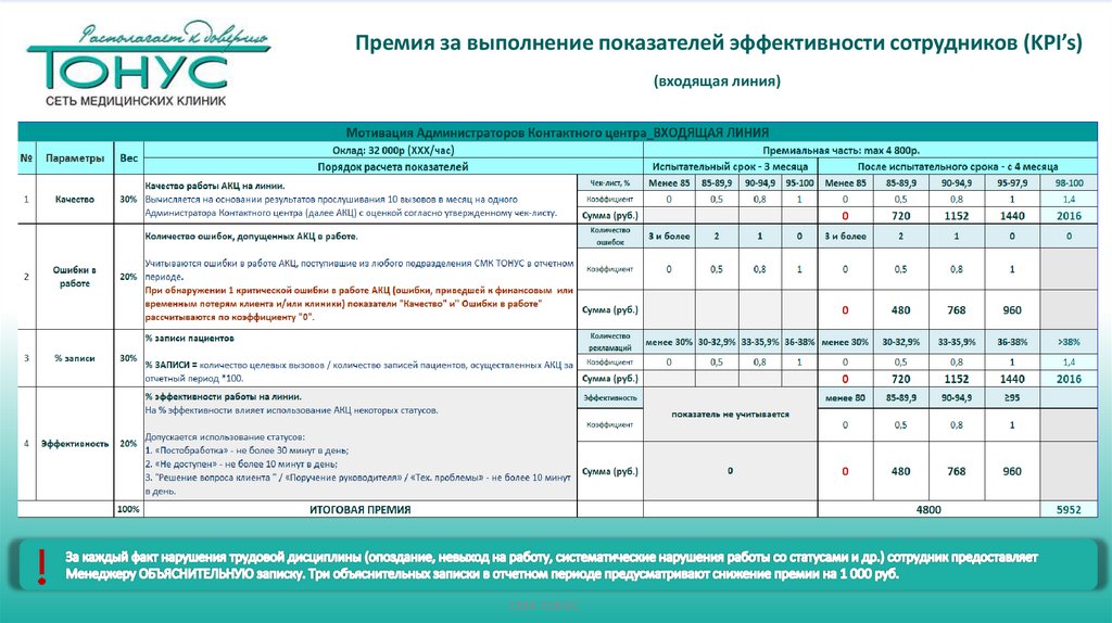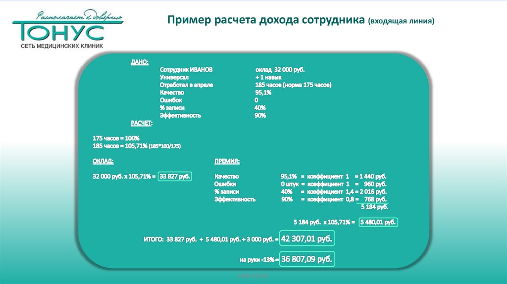 Пример расчета дохода сотрудника (входящая линия)СМК ТОНУС