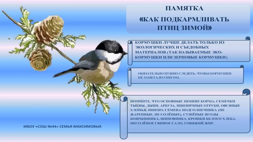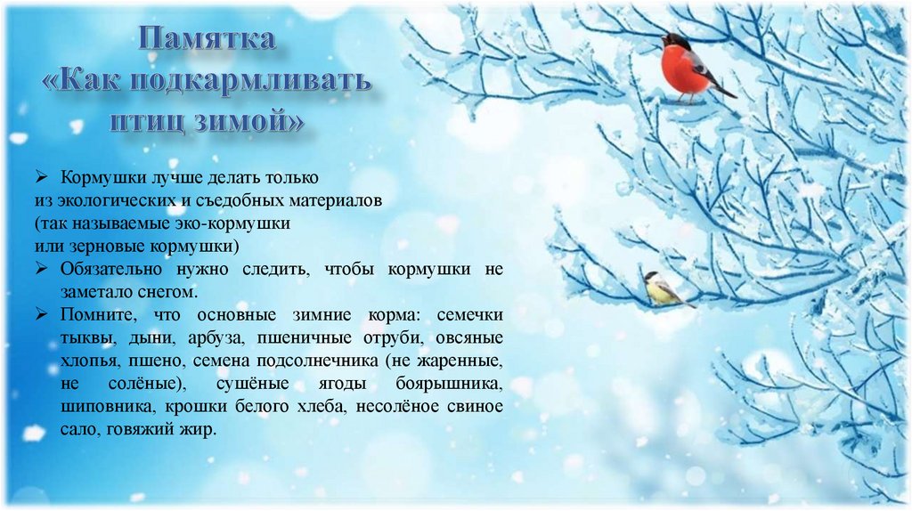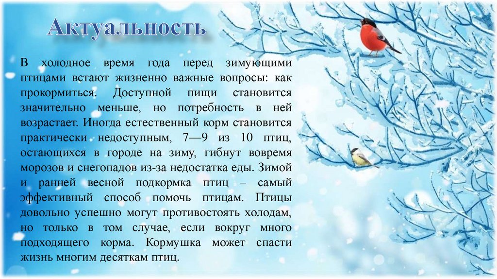 В холодное время года перед зимующимиптицами встают жизненно важные вопросы: как