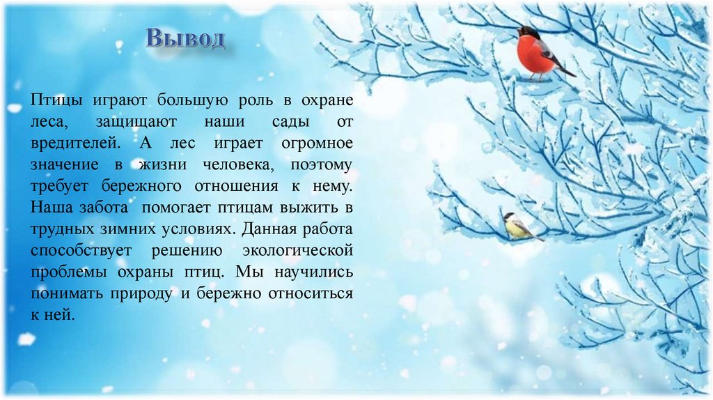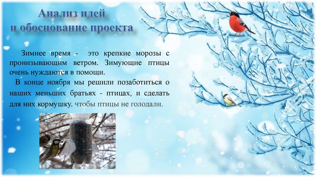 Зимнее время - это крепкие морозы спронизывающим ветром. Зимующие птицы