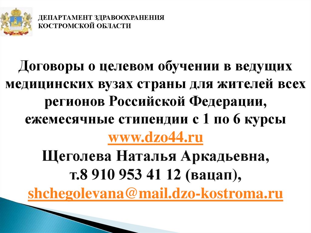 Договоры о целевом обучении в ведущих медицинских вузах страны для жителей всех регионов Российской Федерации