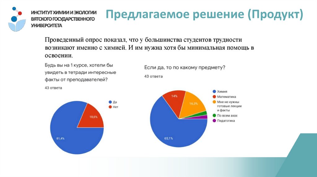 Предлагаемое решение (Продукт)Проведенный опрос показал, что у большинства студентов трудности