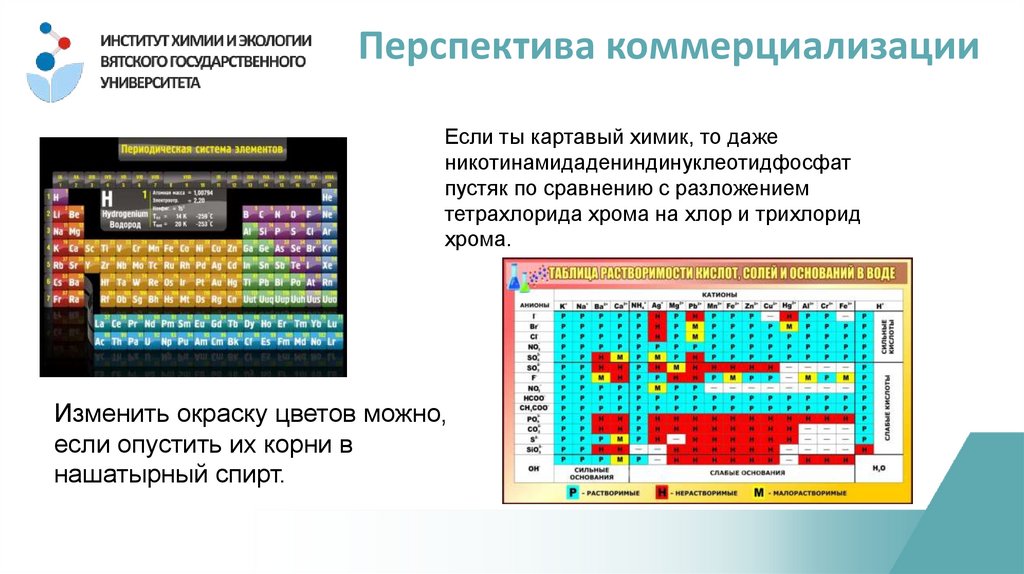 Перспектива коммерциализацииЕсли ты картавый химик, то даже