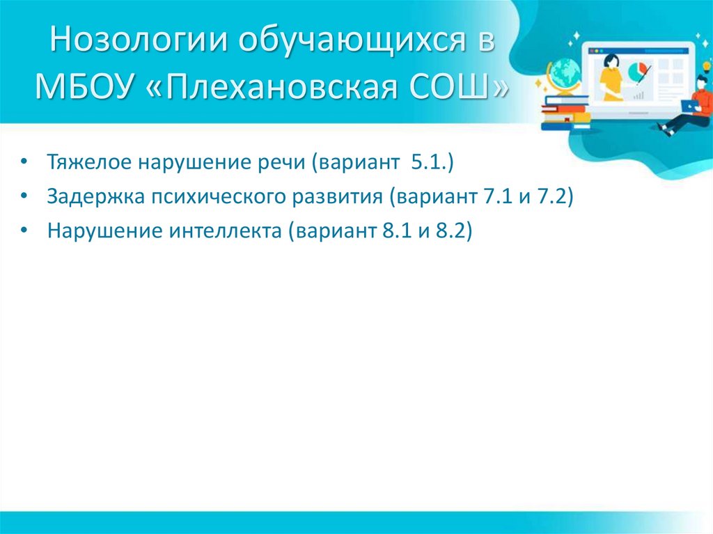 Нозологии обучающихся вМБОУ «Плехановская СОШ»