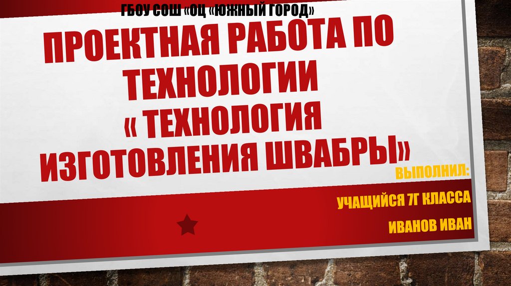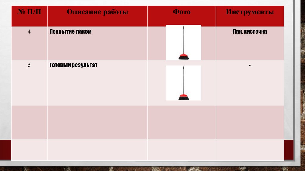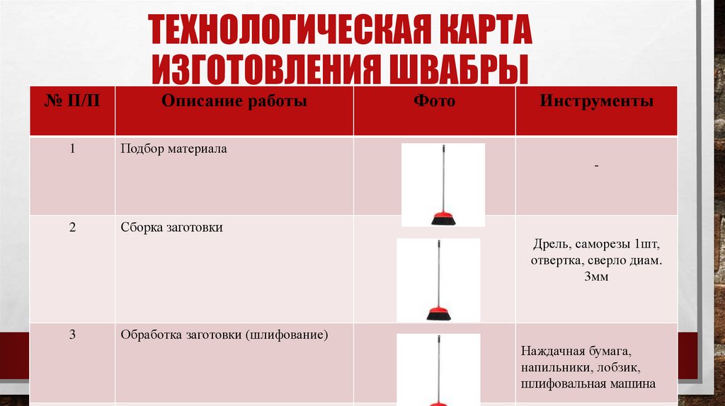 ТЕХНОЛОГИЧЕСКАЯ КАРТАИЗГОТОВЛЕНИЯ ШВАБРЫ