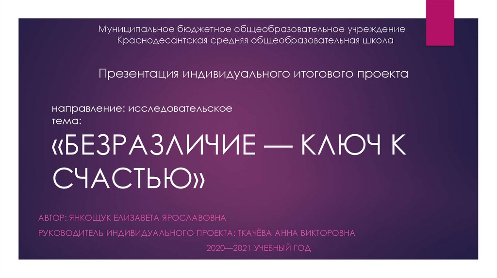 РУКОВОДИТЕЛЬ ИНДИВИДУАЛЬНОГО ПРОЕКТА: ТКАЧЁВА АННА ВИКТОРОВНА