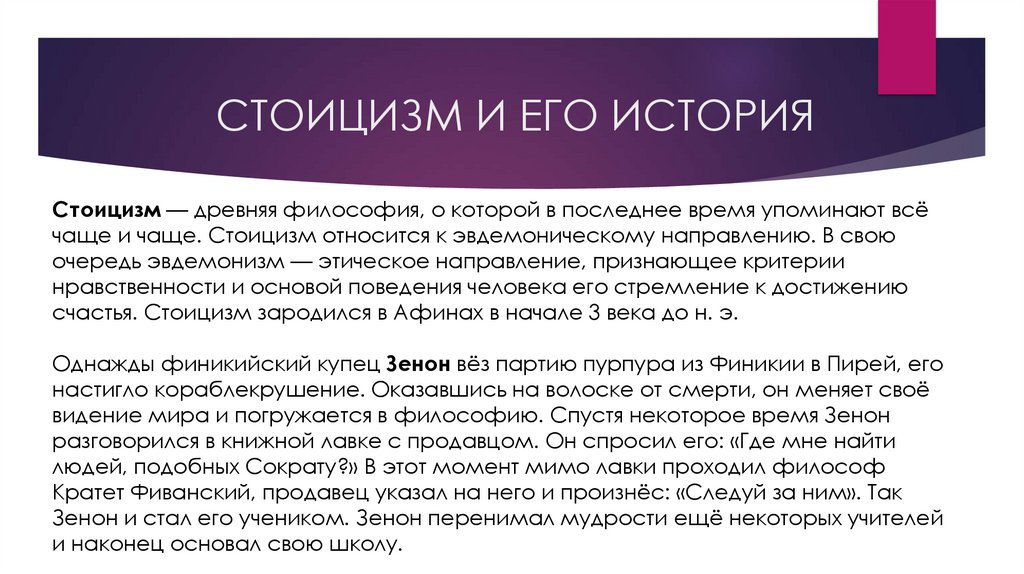 СТОИЦИЗМ И ЕГО ИСТОРИЯСтоицизм — древняя философия, о которой в последнее время упоминают всё