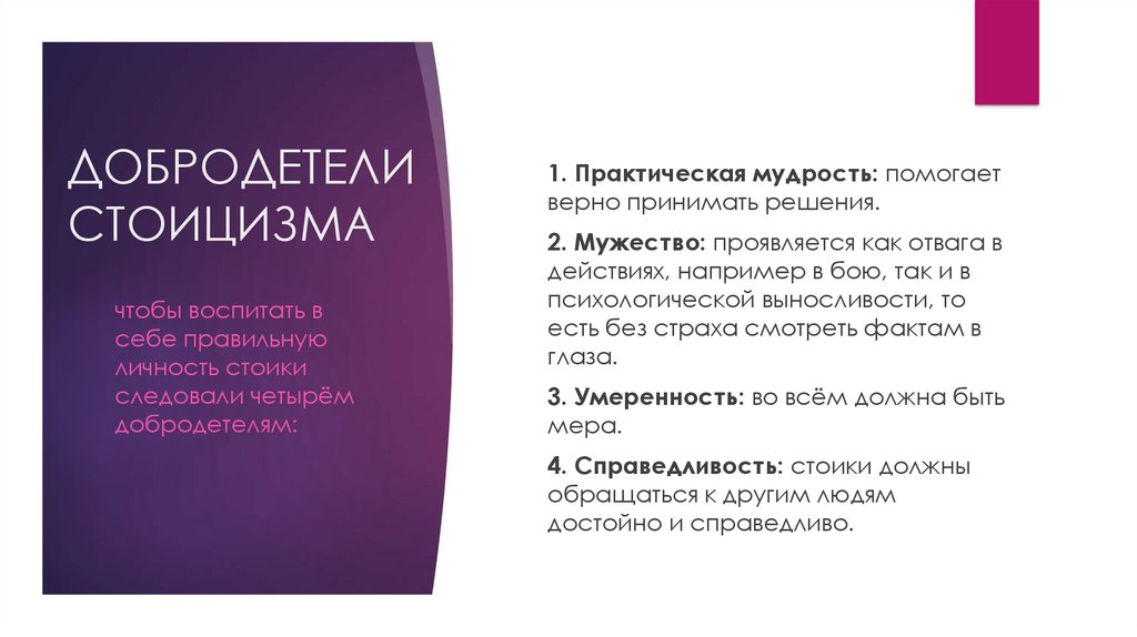 чаще и чаще. Стоицизм относится к эвдемоническому направлению. В свою