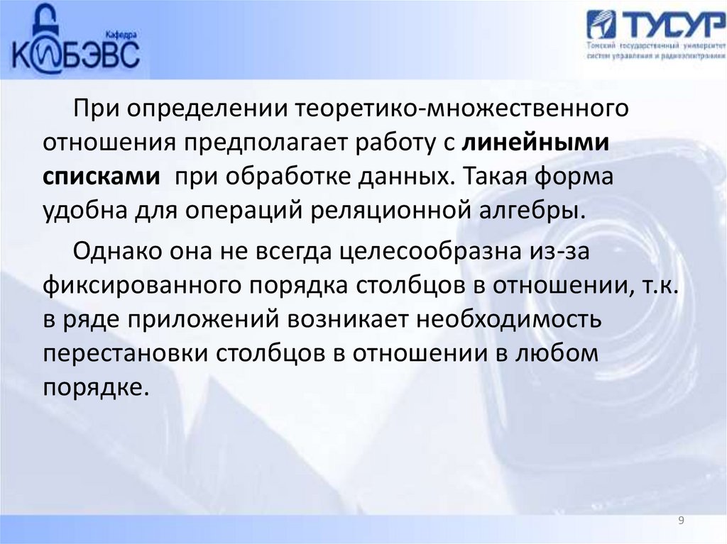При определении теоретико-множественногоотношения предполагает работу с линейными