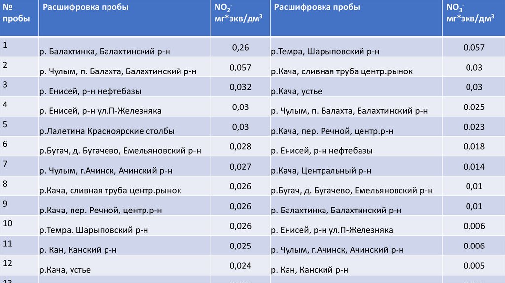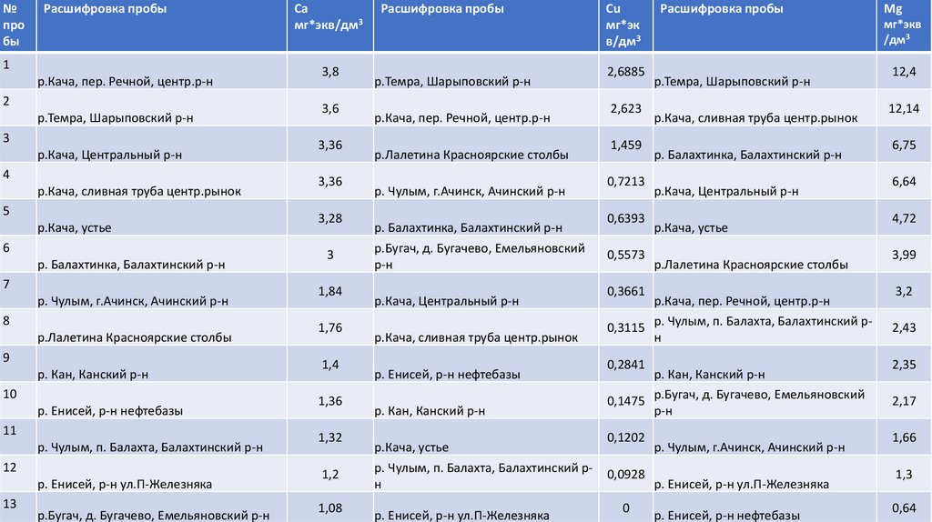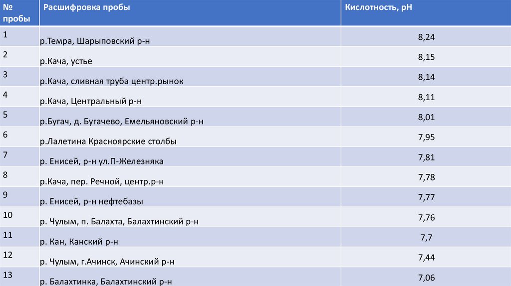 Химические элементы в воде Енисея и малых рек Красноярского края
