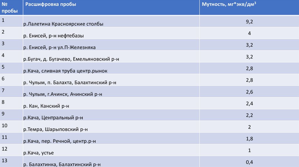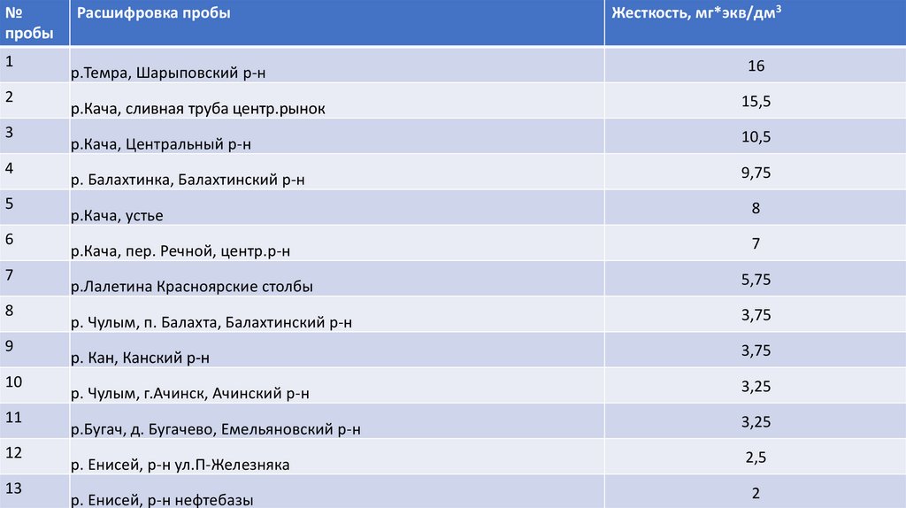 р. Балахтинка, Балахтинский р-нЖесткость воды