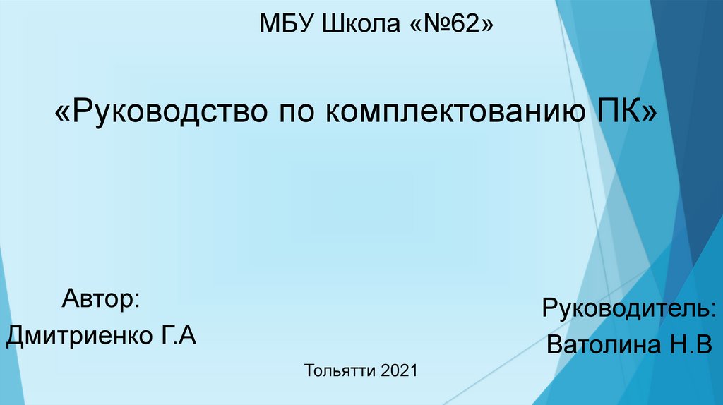 МБУ Школа «№62»«Руководство по комплектованию ПК»