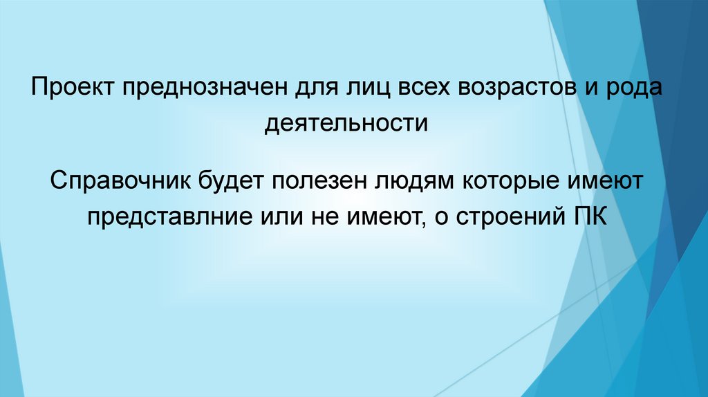 Проект преднозначен для лиц всех возрастов и родадеятельности