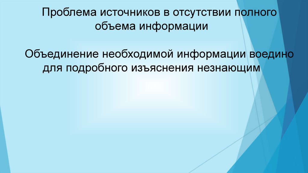 Проблема источников в отсутствии полногообъема информации