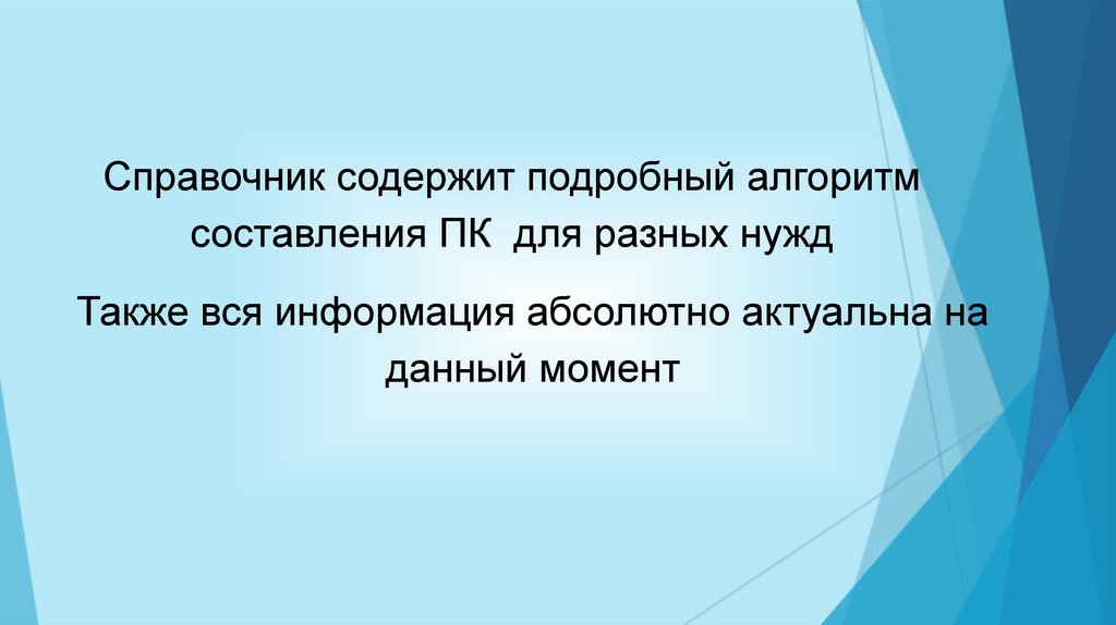 Справочник содержит подробный алгоритмсоставления ПК для разных нужд