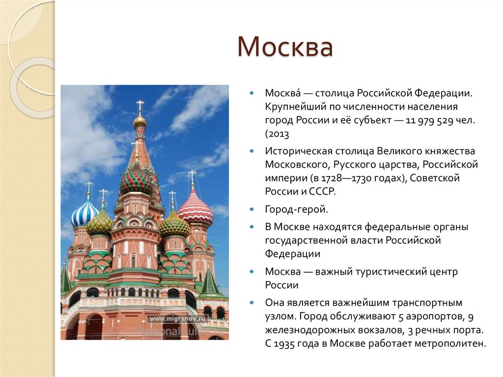 МоскваМосква́ — столица Российской Федерации.