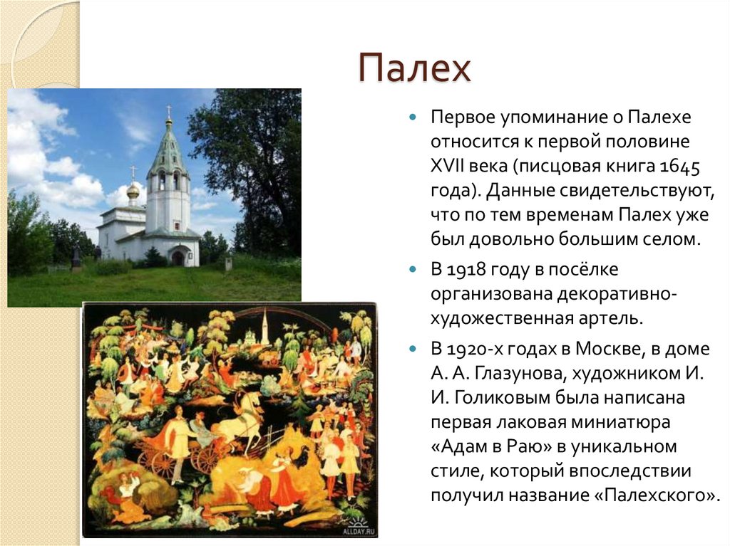 что по тем временам Палех уже