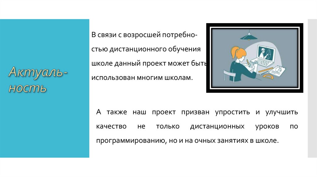 В связи с возросшей потребностью дистанционного обученияшколе данный проект может быть