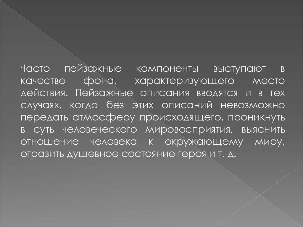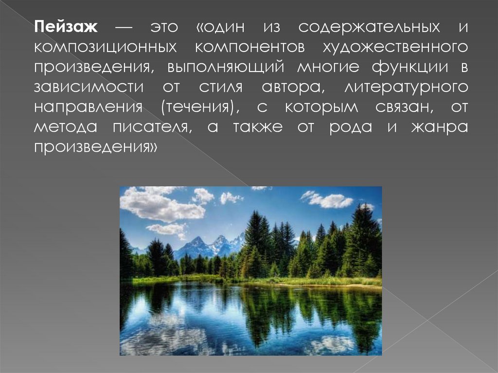 Пейзаж — это «один из содержательных икомпозиционных компонентов художественного