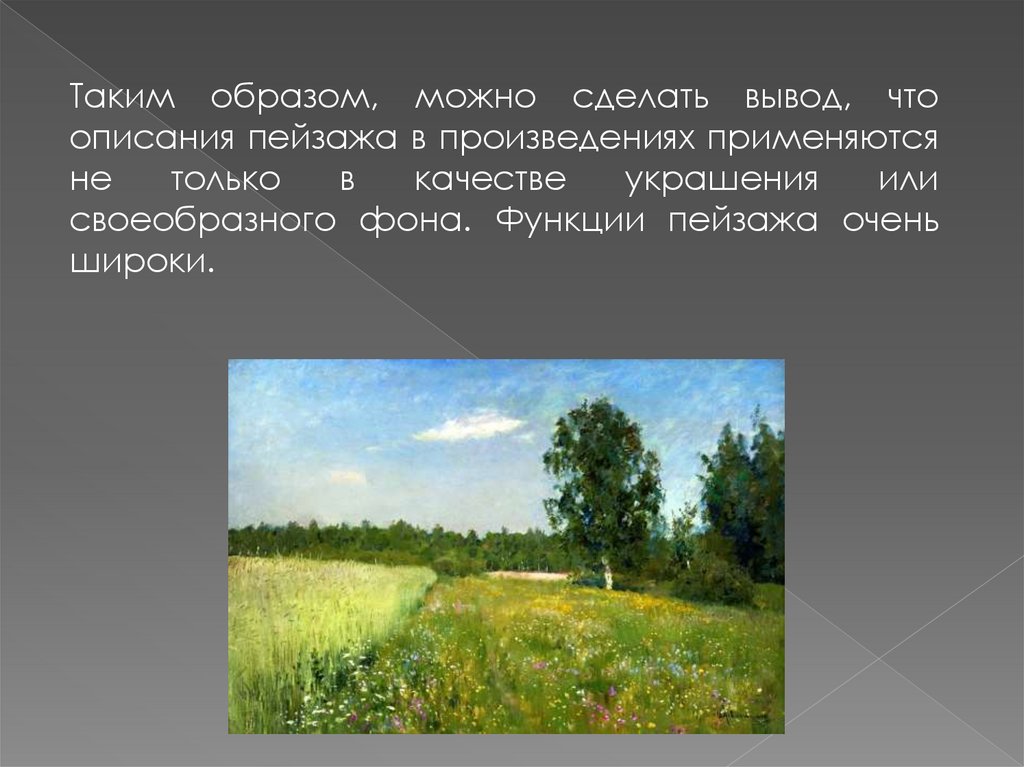Таким образом, можно сделать вывод, чтоописания пейзажа в произведениях применяются
