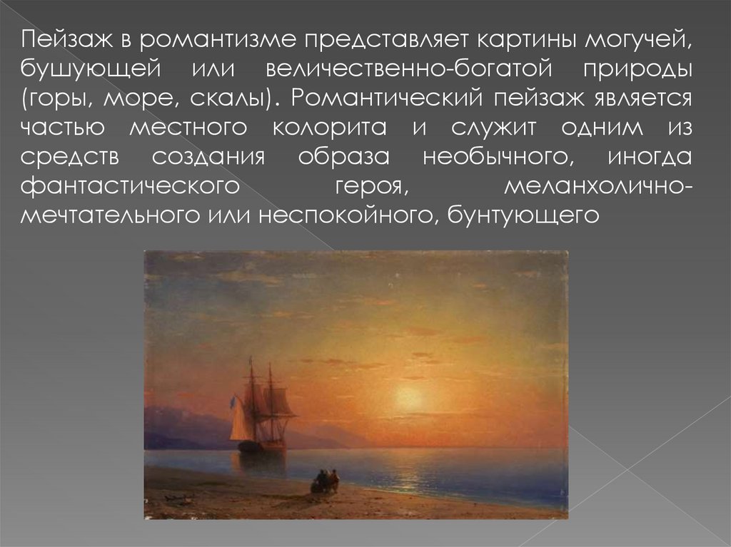 Пейзаж в романтизме представляет картины могучей,бушующей или величественно-богатой природы