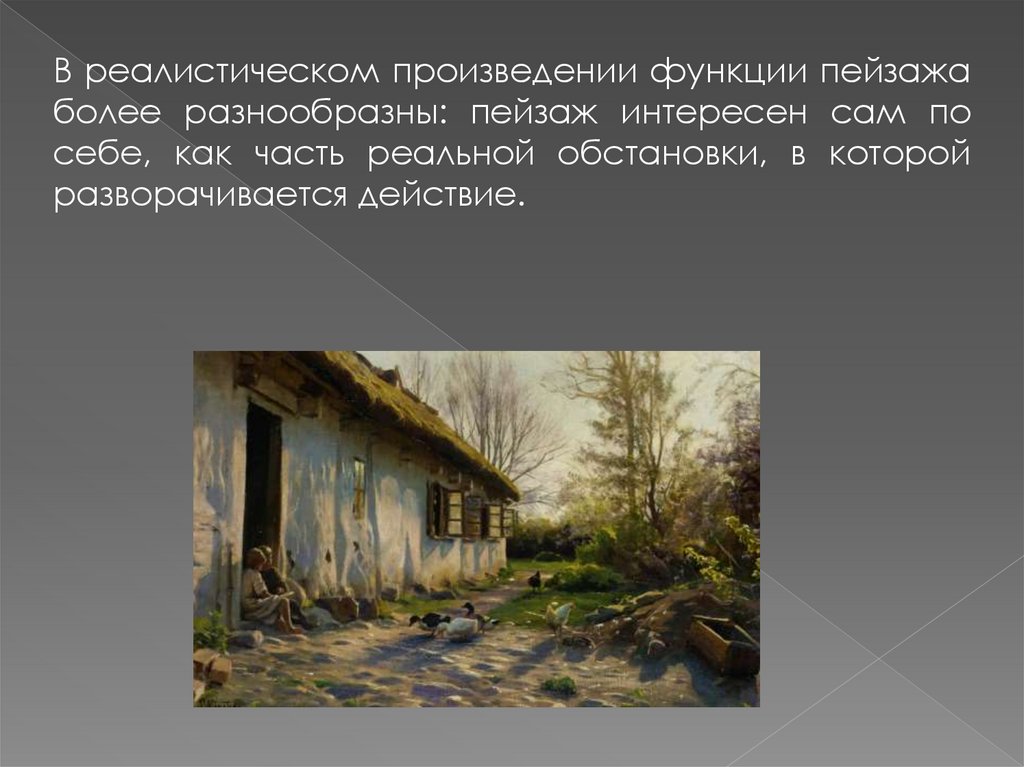В реалистическом произведении функции пейзажаболее разнообразны: пейзаж интересен сам по