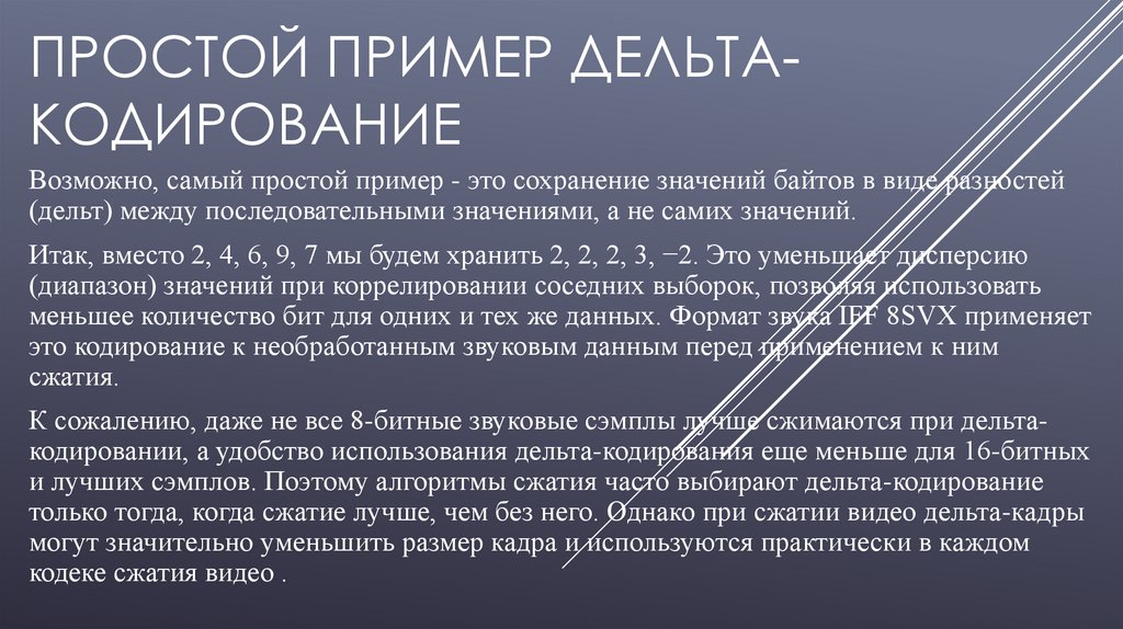 и лучших сэмплов. Поэтому алгоритмы сжатия часто выбирают дельта-кодирование