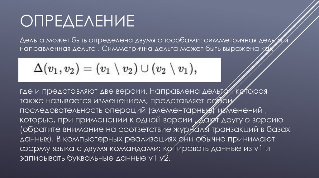 ОПРЕДЕЛЕНИЕДельта может быть определена двумя способами: симметричная дельта и