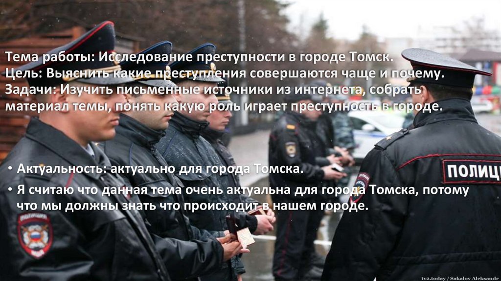 Тема работы: Исследование преступности в городе Томск.Цель: Выяснить какие преступления совершаются чаще и почему.