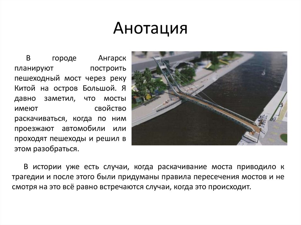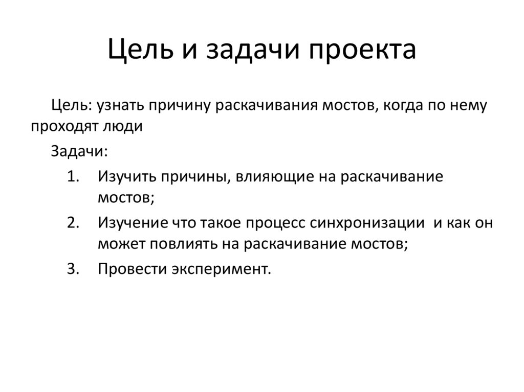 Цель и задачи проектаЦель: узнать причину раскачивания мостов, когда по нему