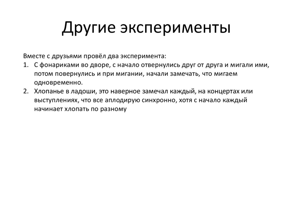 Другие экспериментыВместе с друзьями провёл два эксперимента: