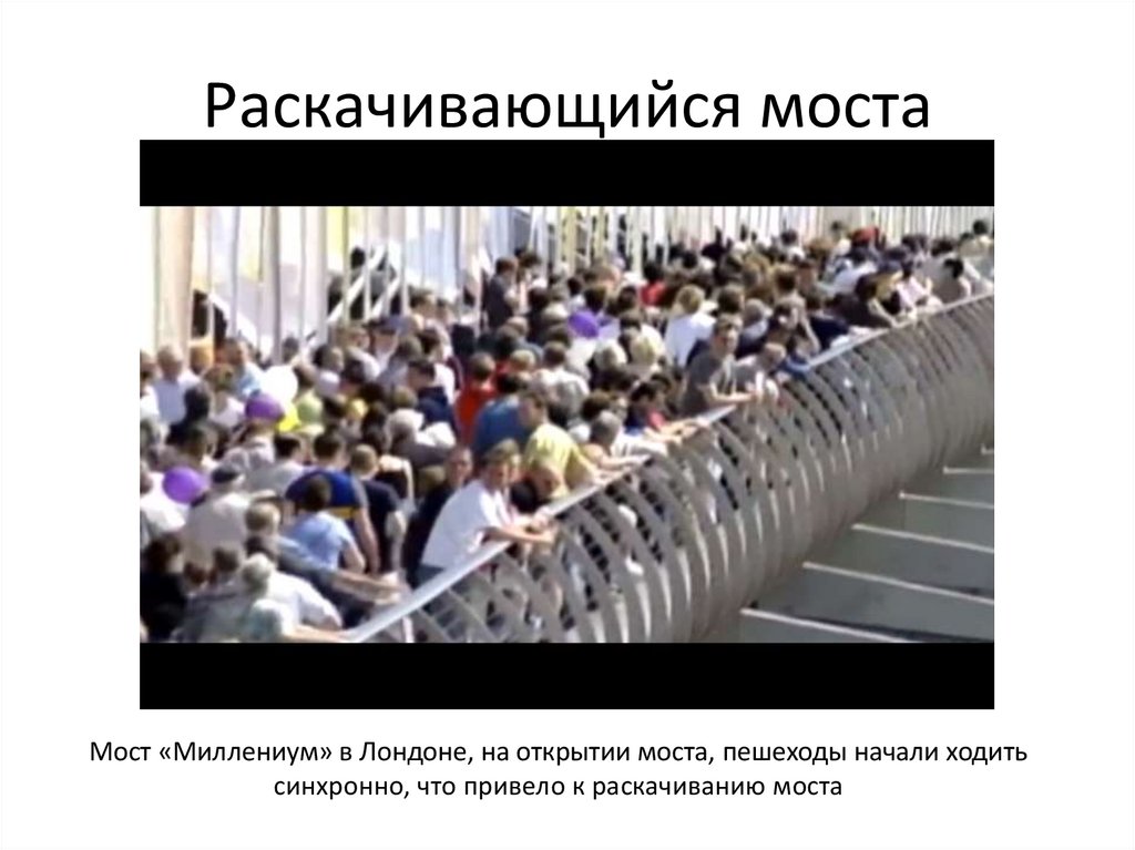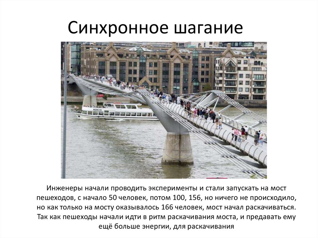синхронизироваться и как это может повлиять на раскачивание мостов;