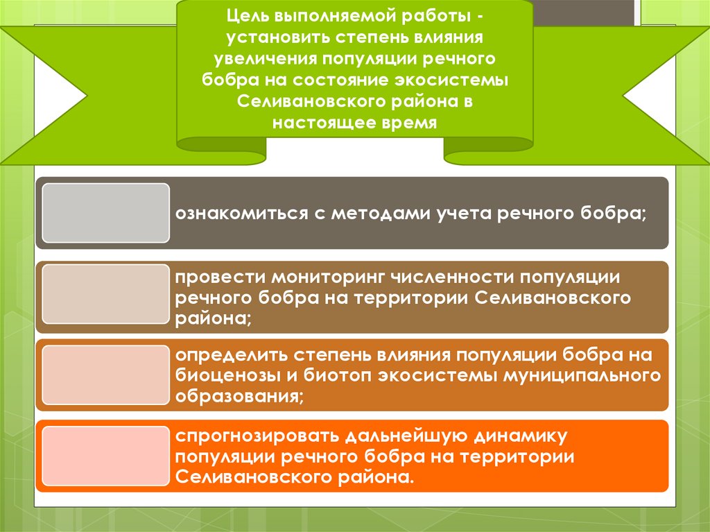 Цель выполняемой работы установить степень влиянияувеличения популяции речного
