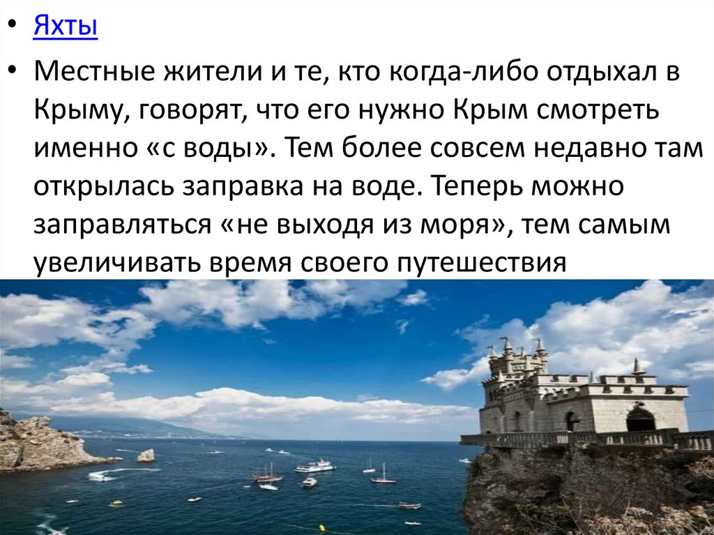 • Яхты• Местные жители и те, кто когда-либо отдыхал в