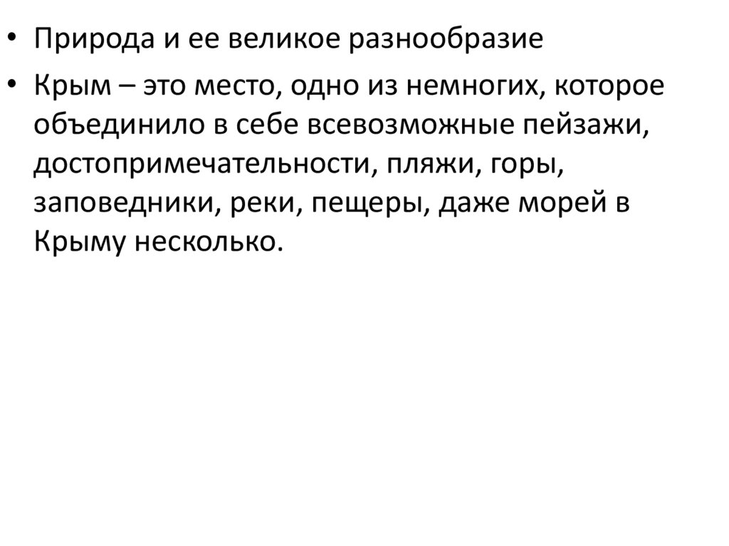 • Природа и ее великое разнообразие• Крым – это место, одно из немногих, которое