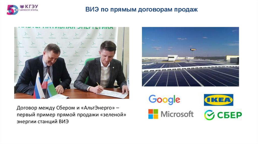 ВИЭ по прямым договорам продажДоговор между Сбером и «АльтЭнерго» –