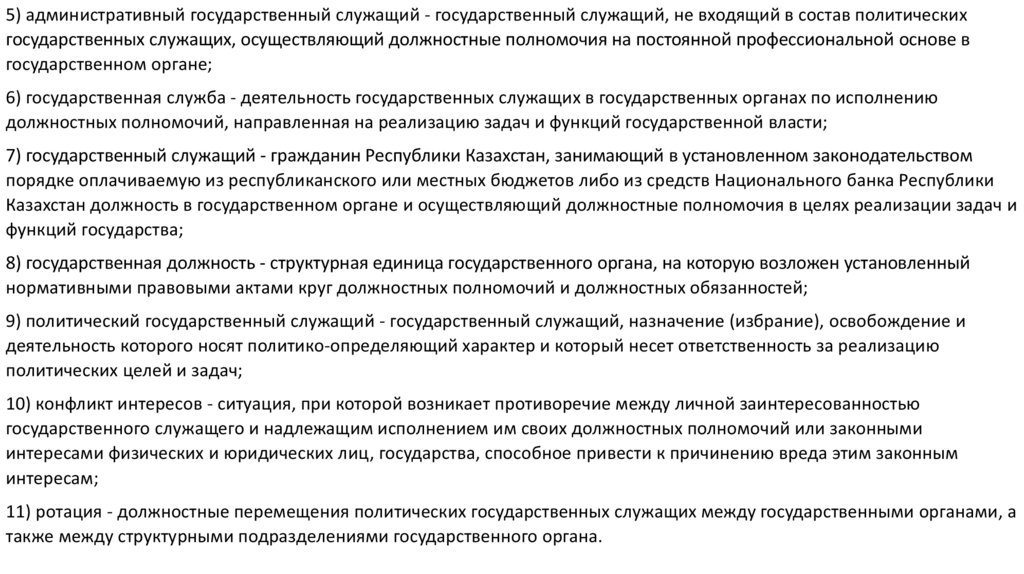 11) ротация - должностные перемещения политических государственных служащих между государственными органами, а
