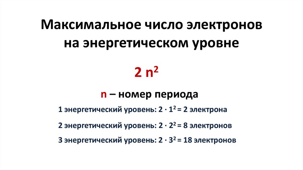 2 энергетический уровень: 2 · 22 = 8 электронов