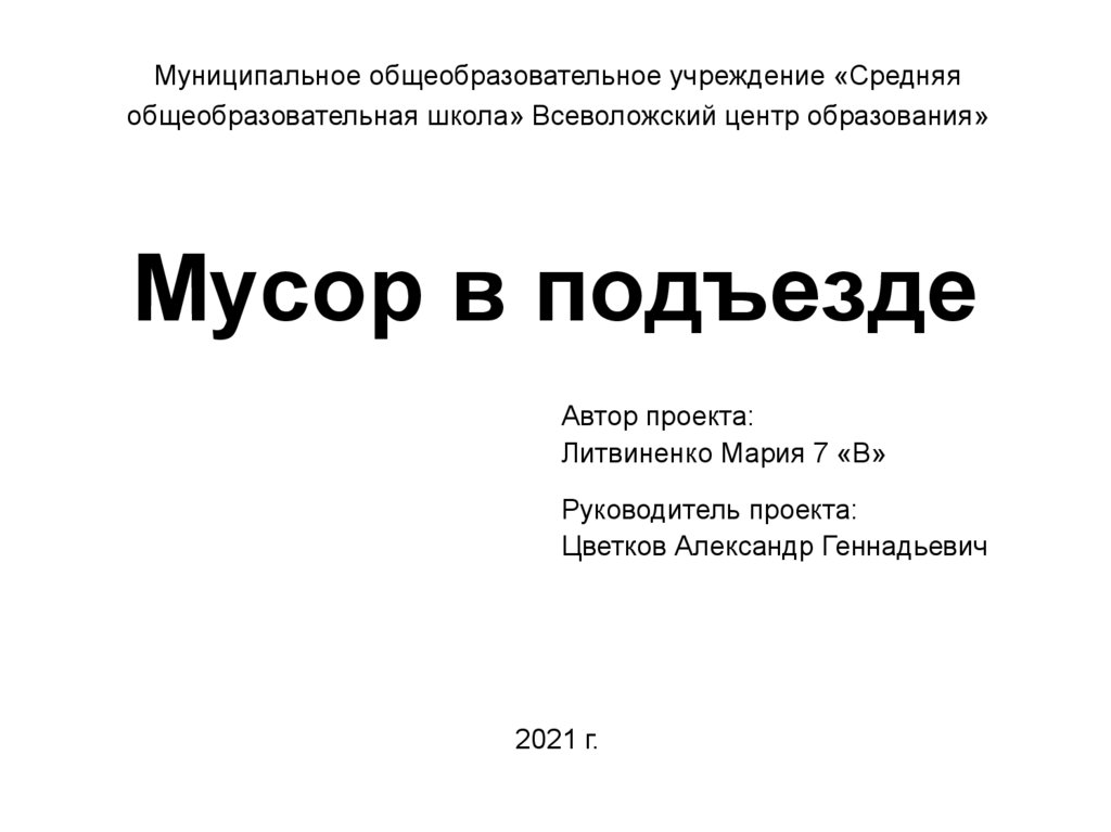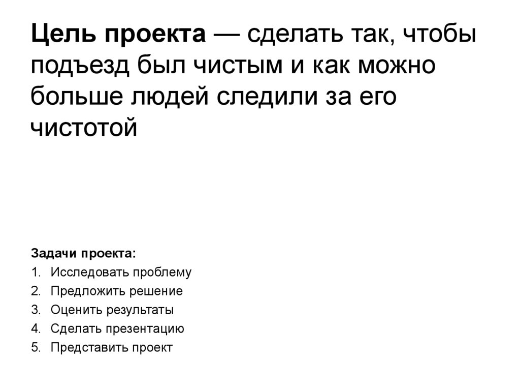 Цель проекта — сделать так, чтобыподъезд был чистым и как можно