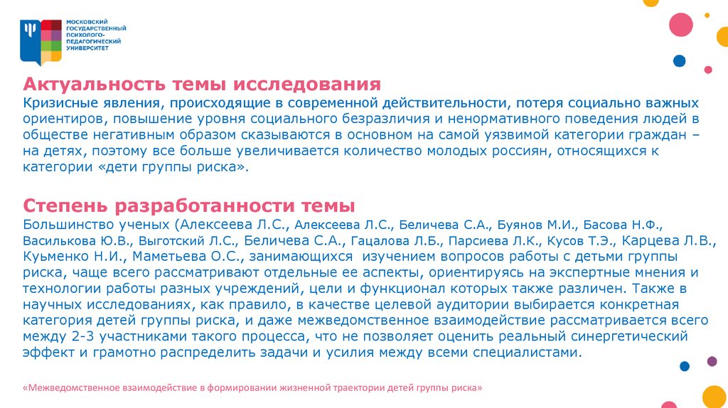 категория детей группы риска, и даже межведомственное взаимодействие рассматривается всего