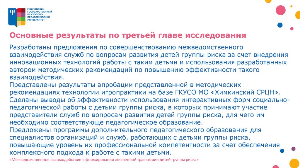 Основные результаты по третьей главе исследованияРазработаны предложения по совершенствованию межведомственного