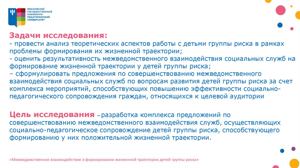 Задачи исследования:- провести анализ теоретических аспектов работы с детьми группы риска в рамках