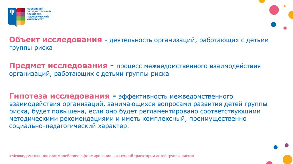 Объект исследования - деятельность организаций, работающих с детьмигруппы риска