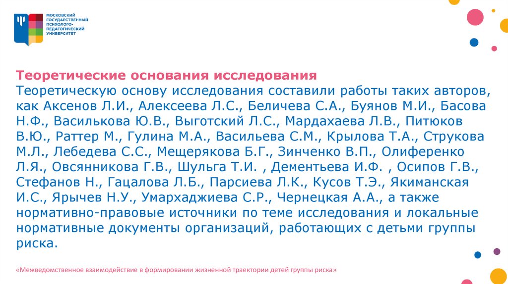 Теоретические основания исследованияТеоретическую основу исследования составили работы таких авторов,
