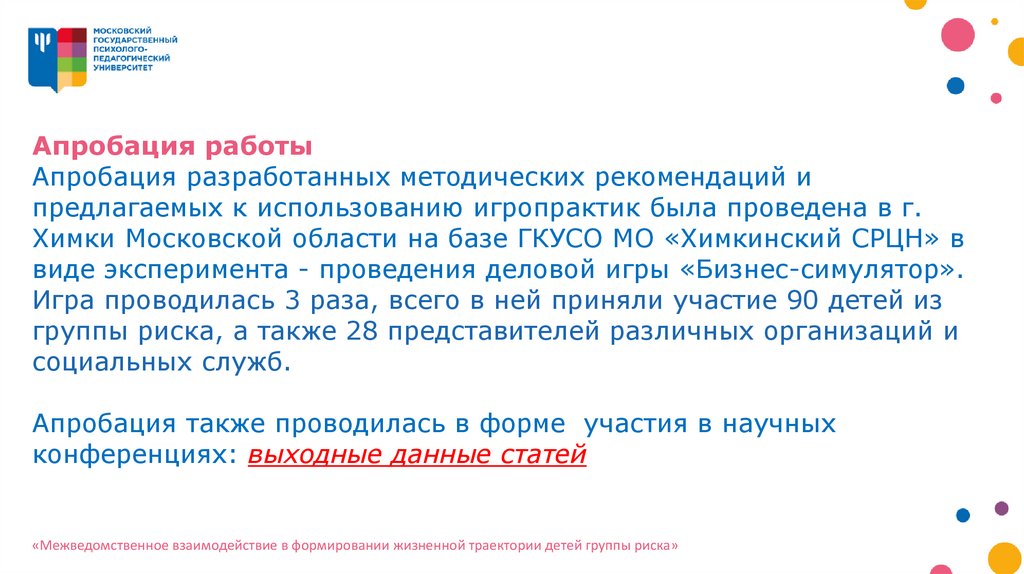Апробацию выдвинутая гипотеза прошла на базе ГКУСО МО «Химкинский СРЦН», где в качестве