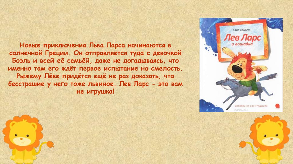 Новые приключения Льва Ларса начинаются всолнечной Греции. Он отправляется туда с девочкой
