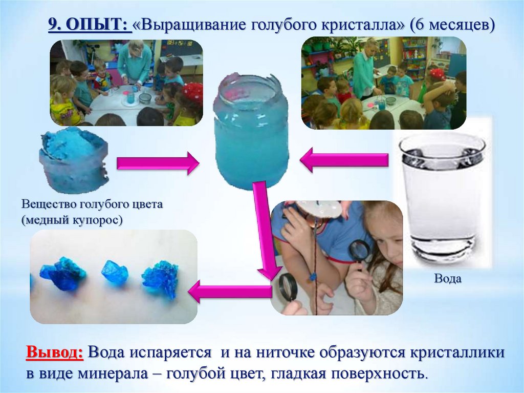 9. ОПЫТ: «Выращивание голубого кристалла» (6 месяцев)Вещество голубого цвета