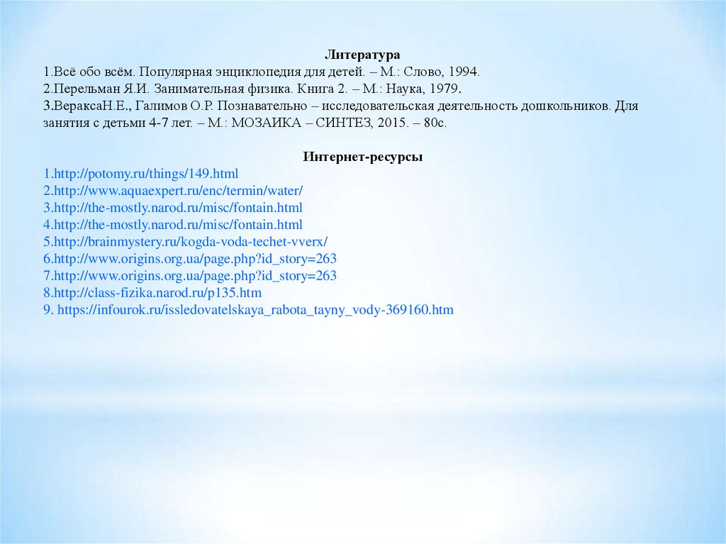 9. https://infourok.ru/issledovatelskaya_rabota_tayny_vody-369160.htm