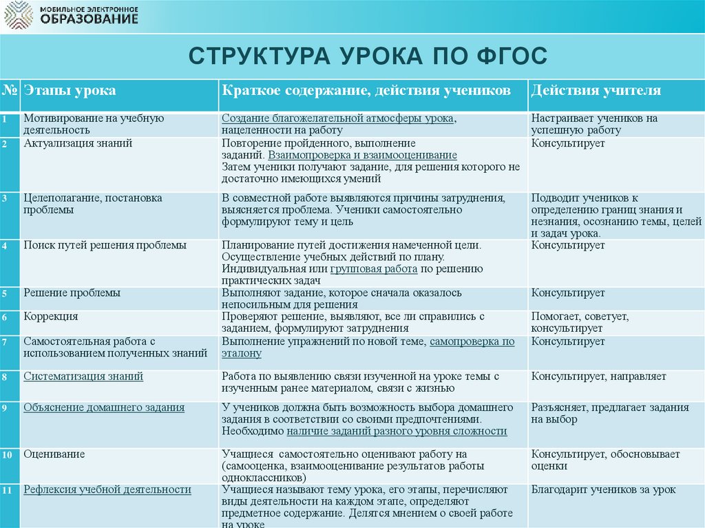 СТРУКТУРА УРОКА ПО ФГОС№ Этапы урока